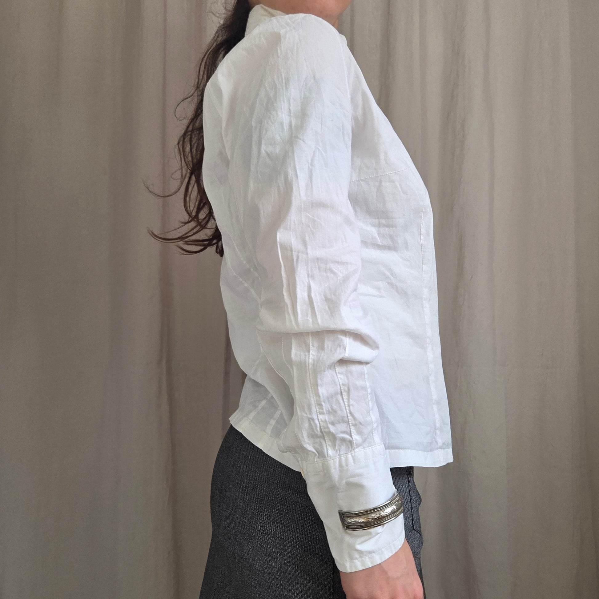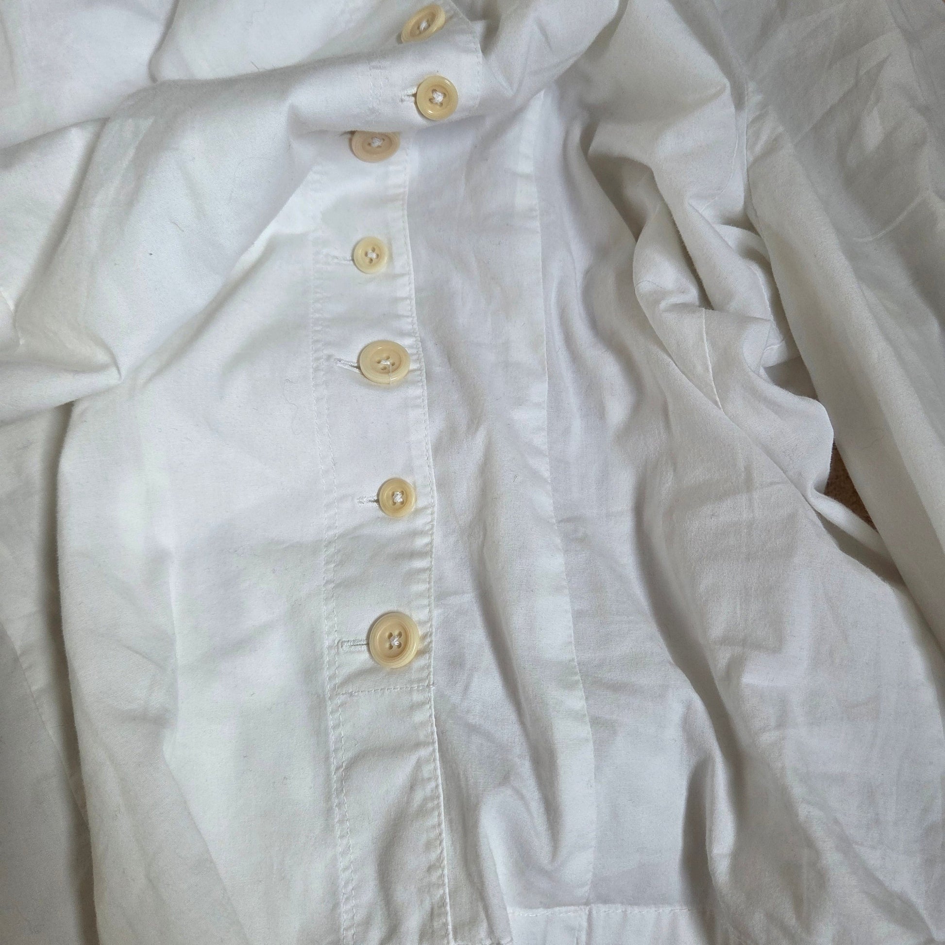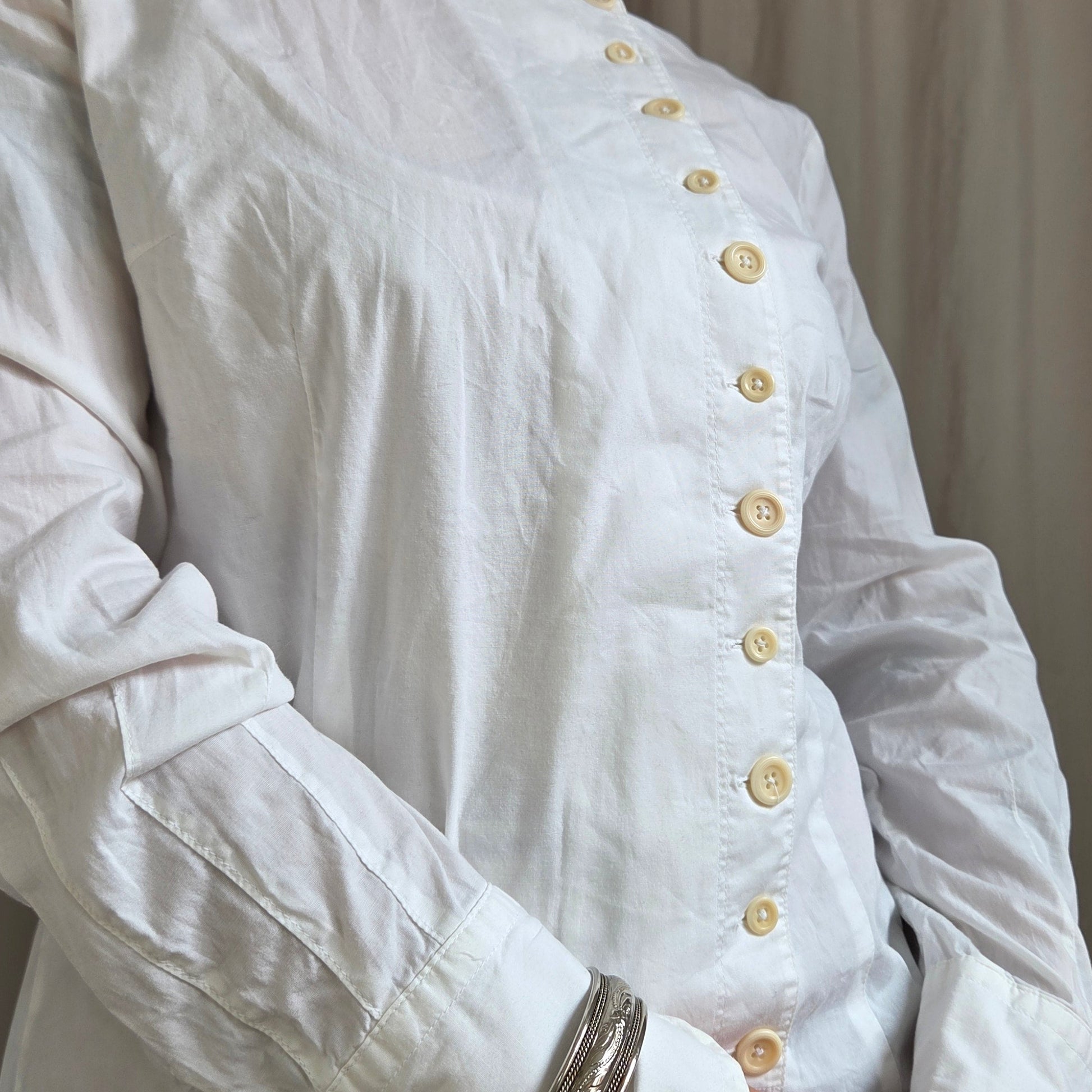 Vintage multi button long sleeve collared shirt in white and cream