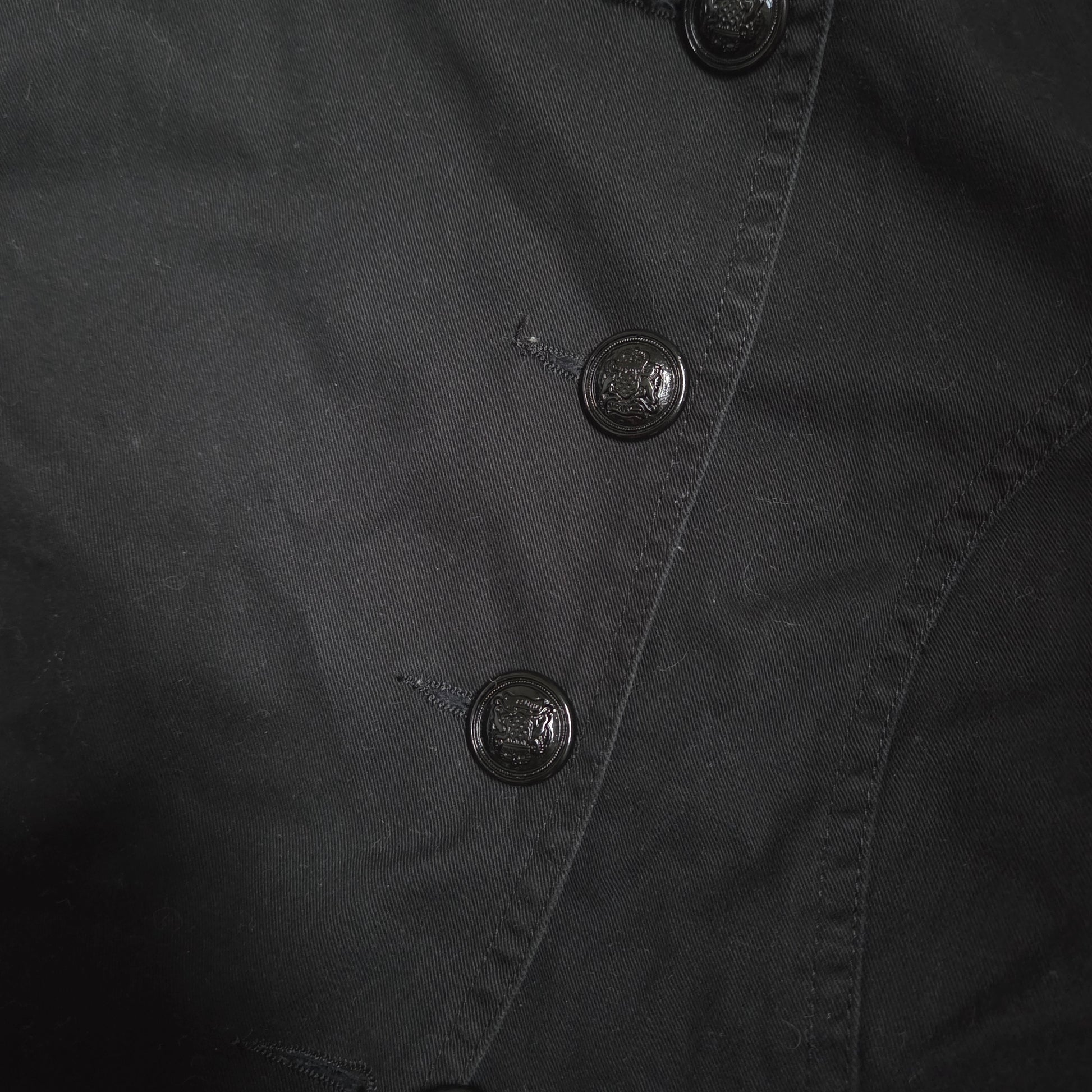 Vintage Military Asymmetrical Jacket. Design engraved on the buttons, black