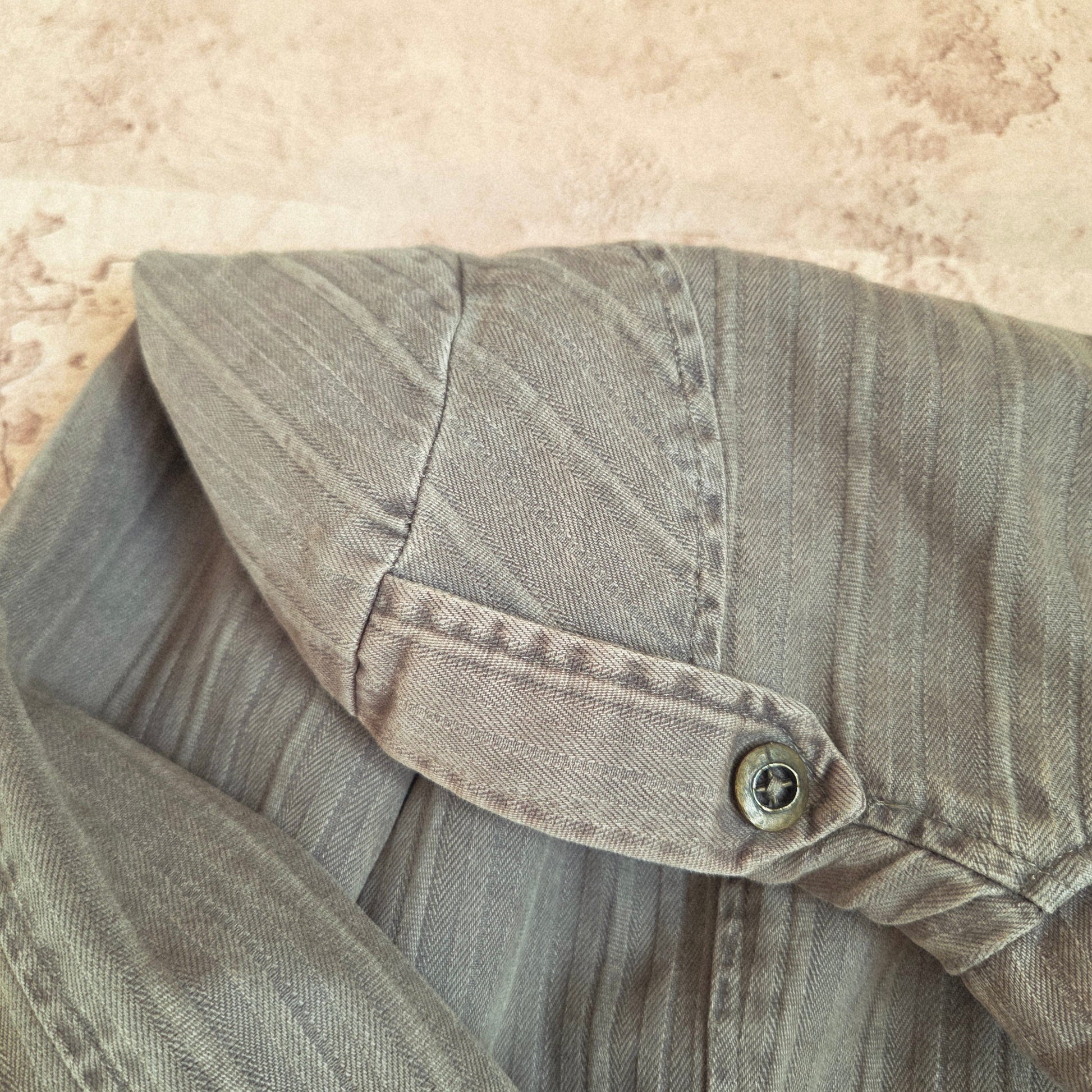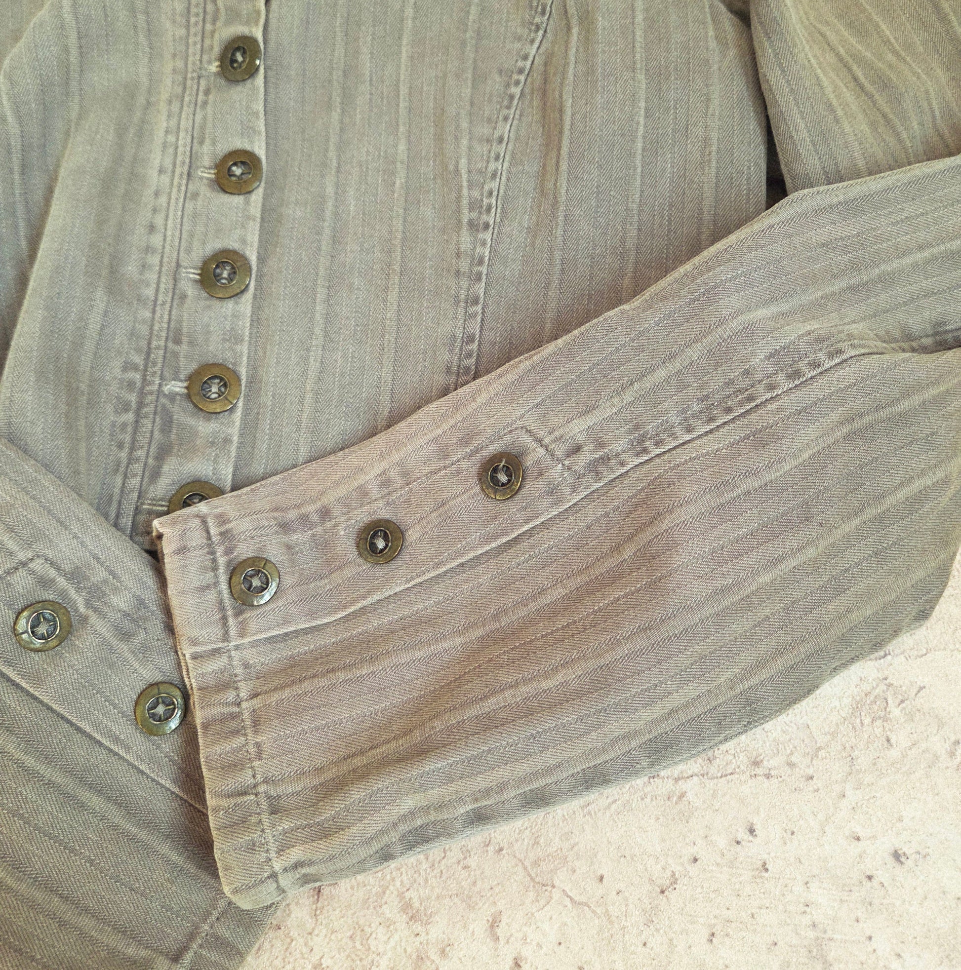 Vintage striped front buttons up lightweight jacket in light khaki green.