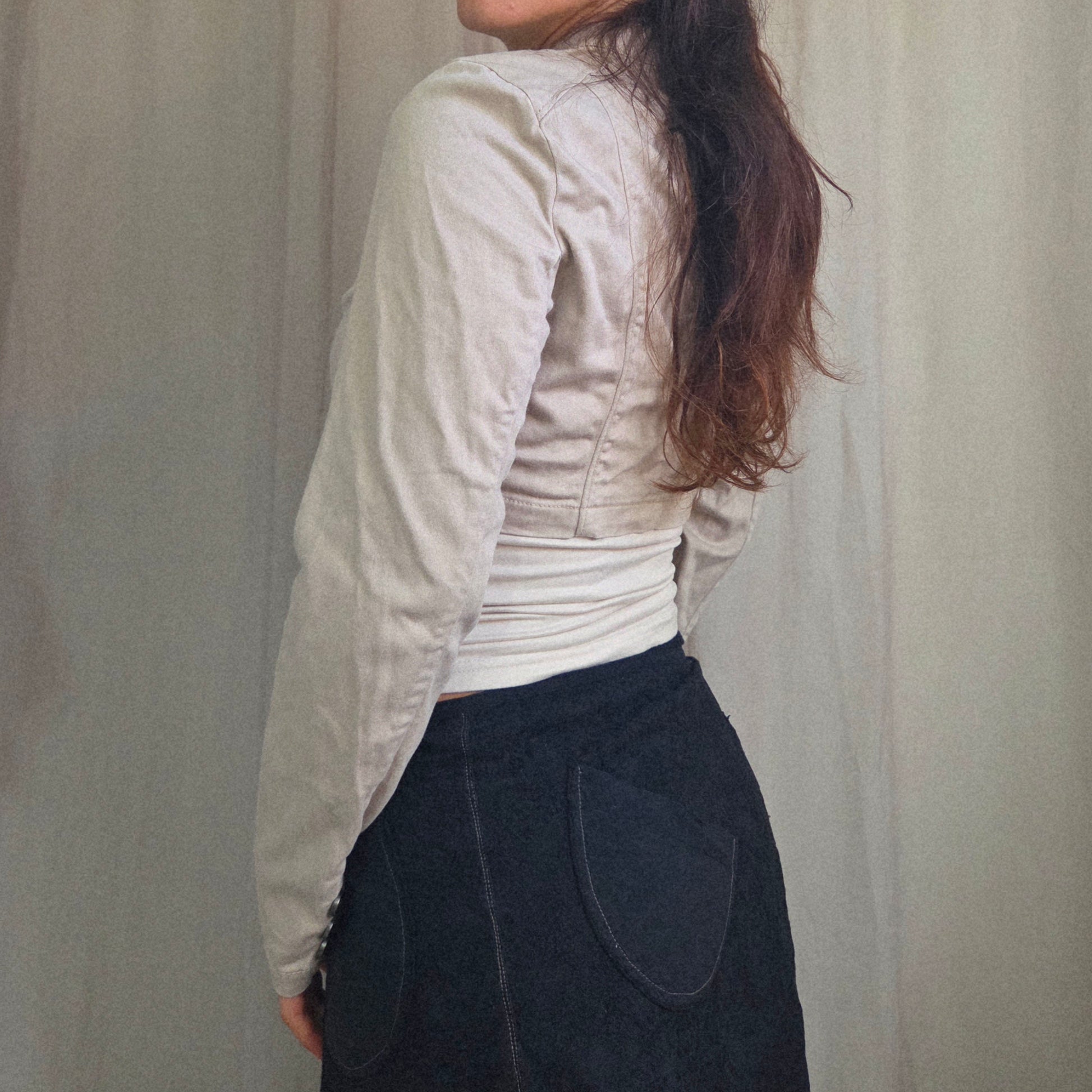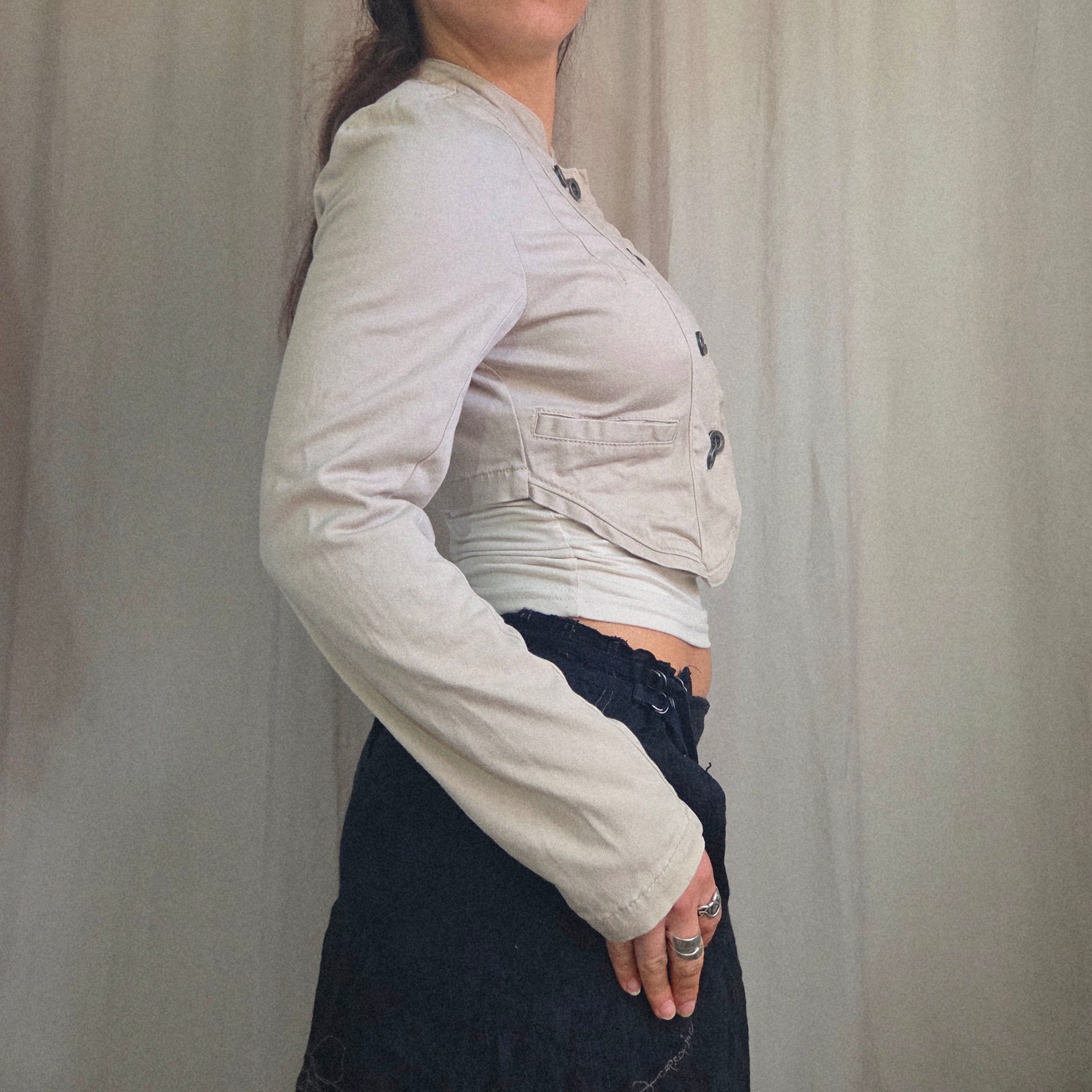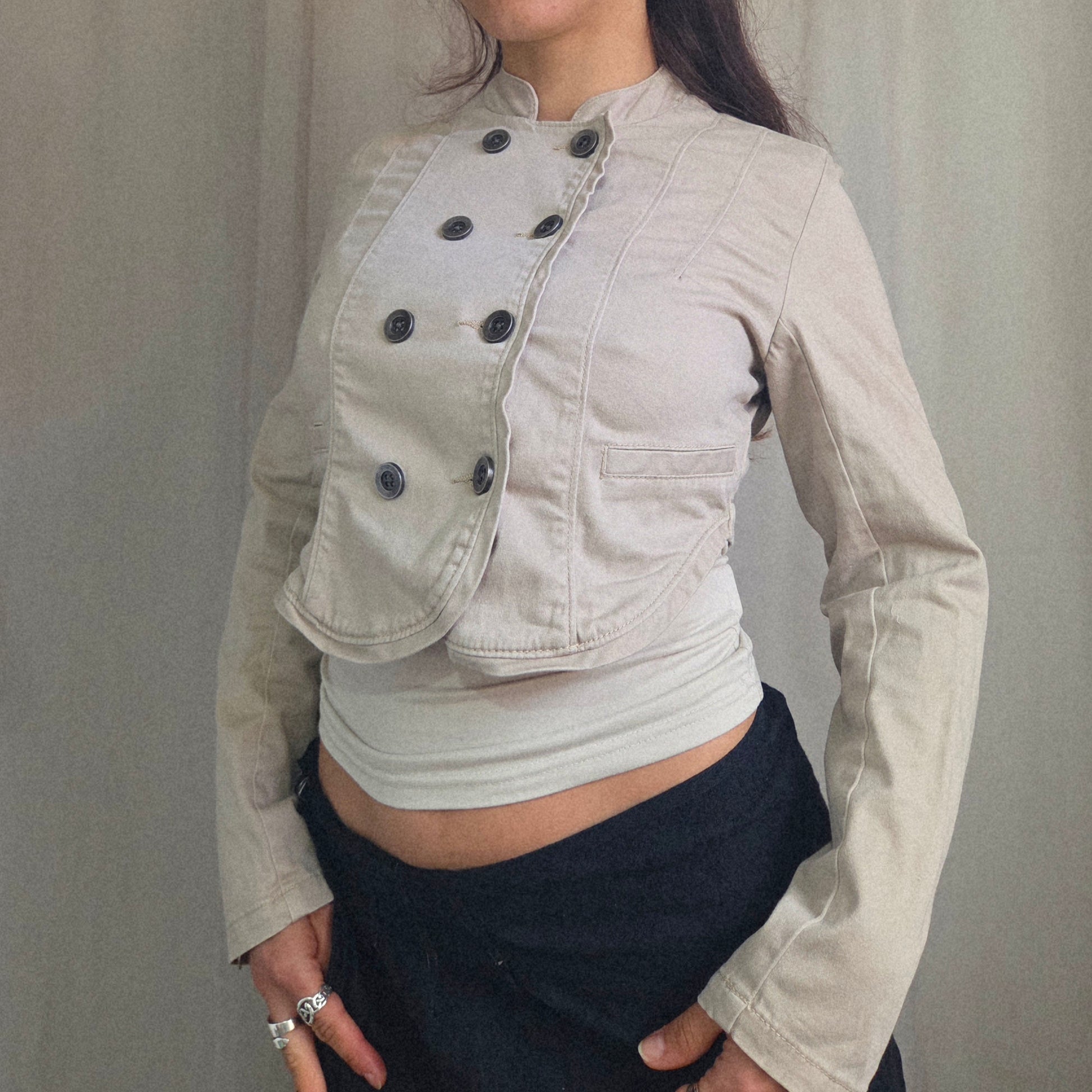 Vintage Military cream cropped jacket with double breasted button front and long sleeves