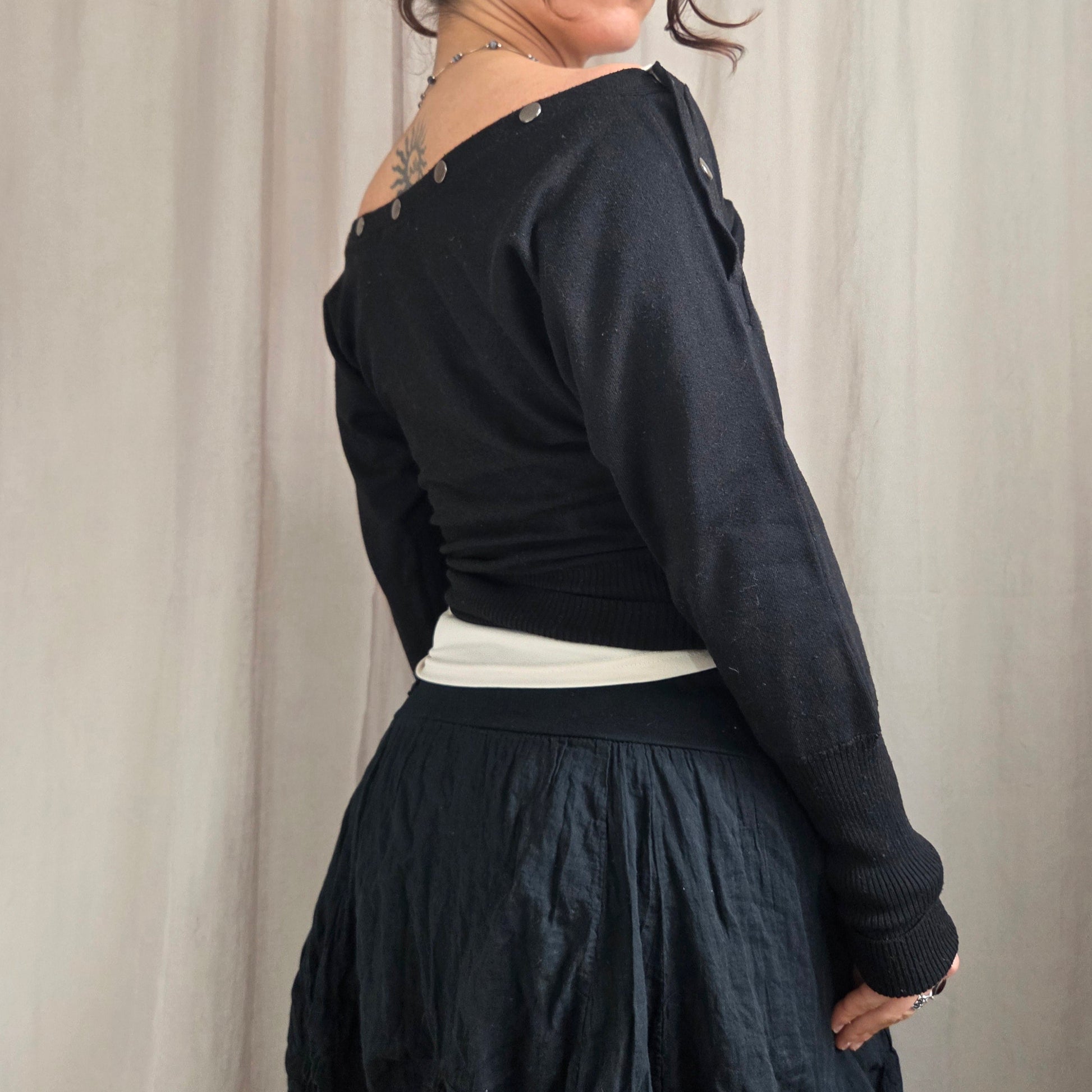 Vintage Black Morgan de toi Batwing top, fitted sleeves and waist