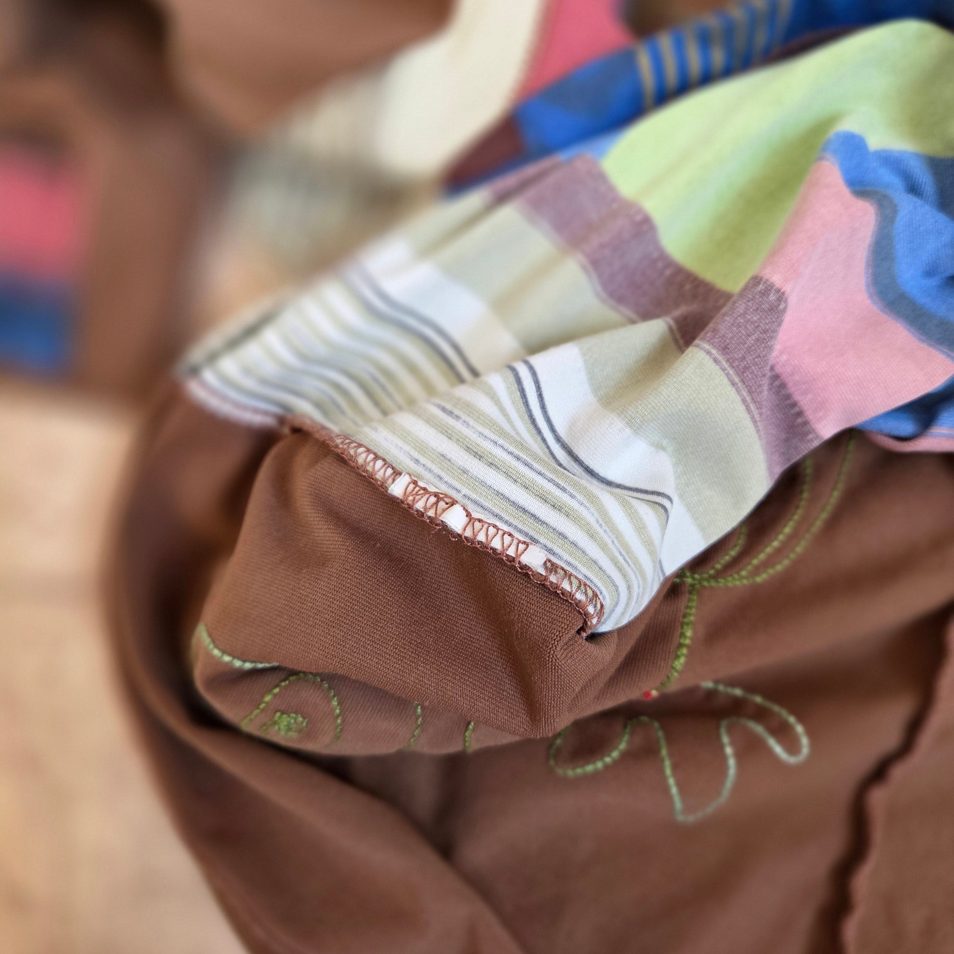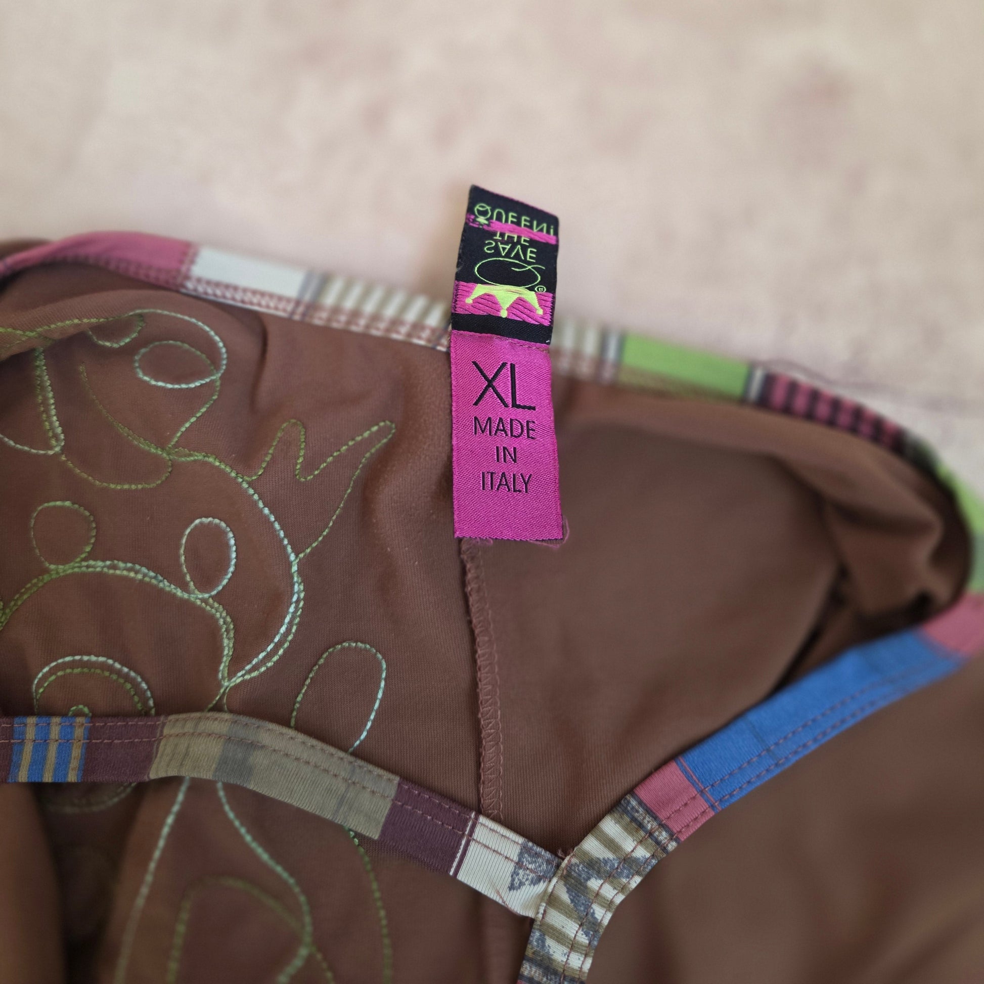 Save the queen 3/4 sleeve graphic top, brown and multi coloured