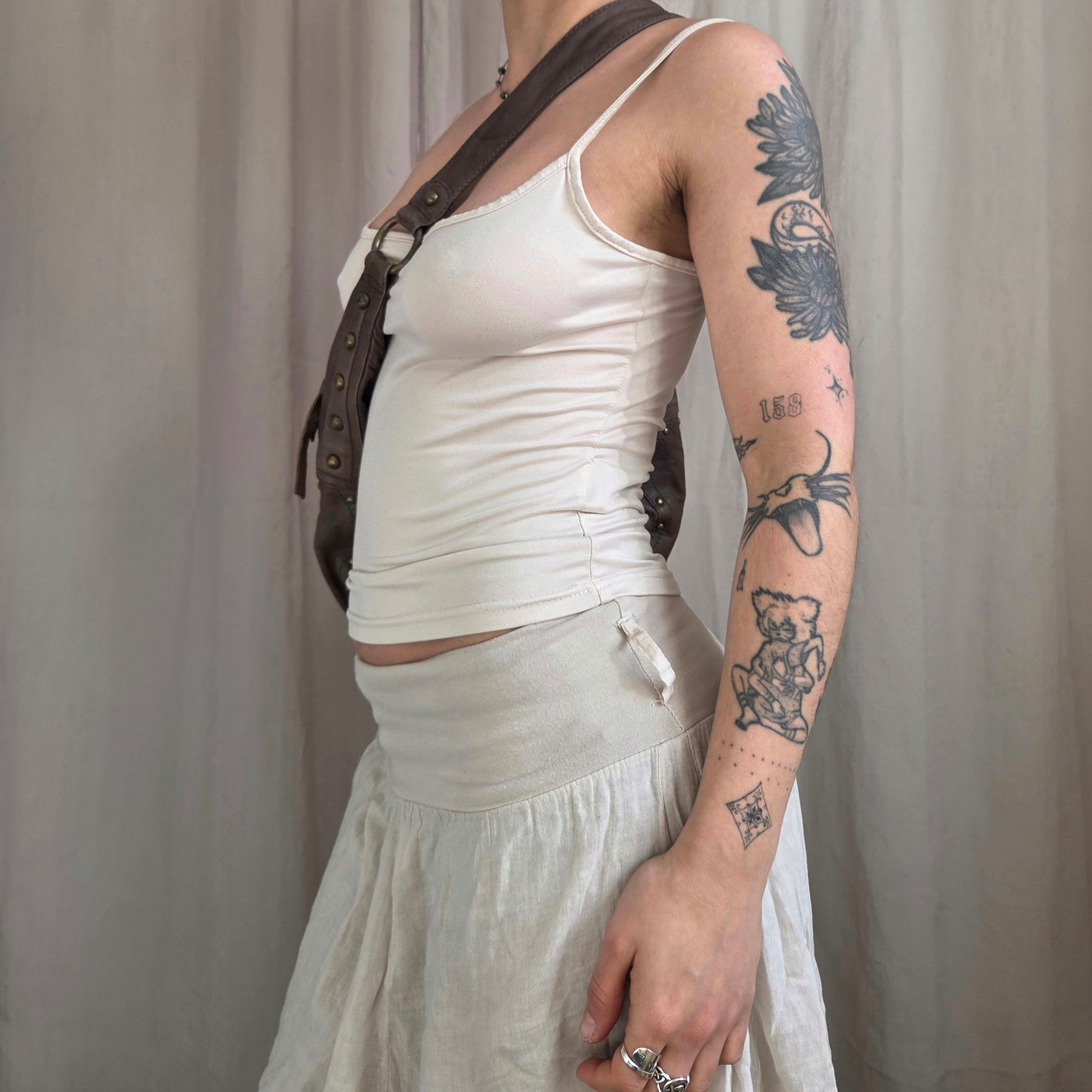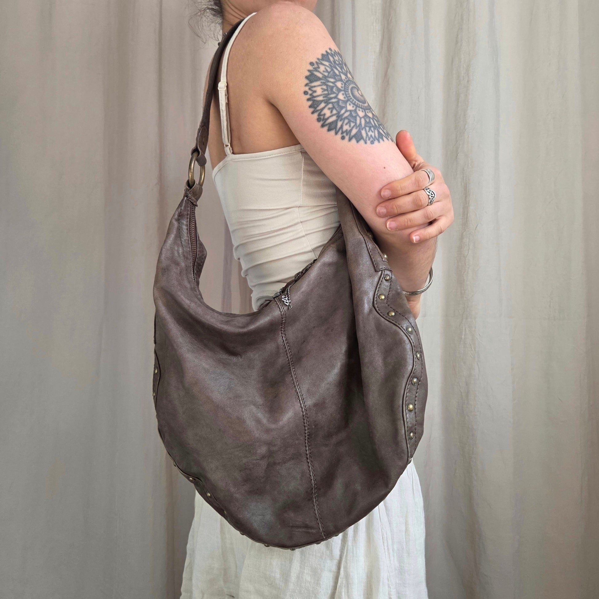 Vintage Sheep Leather Hardware Shoulder Hobo bag in khaki/brown golden rust studs