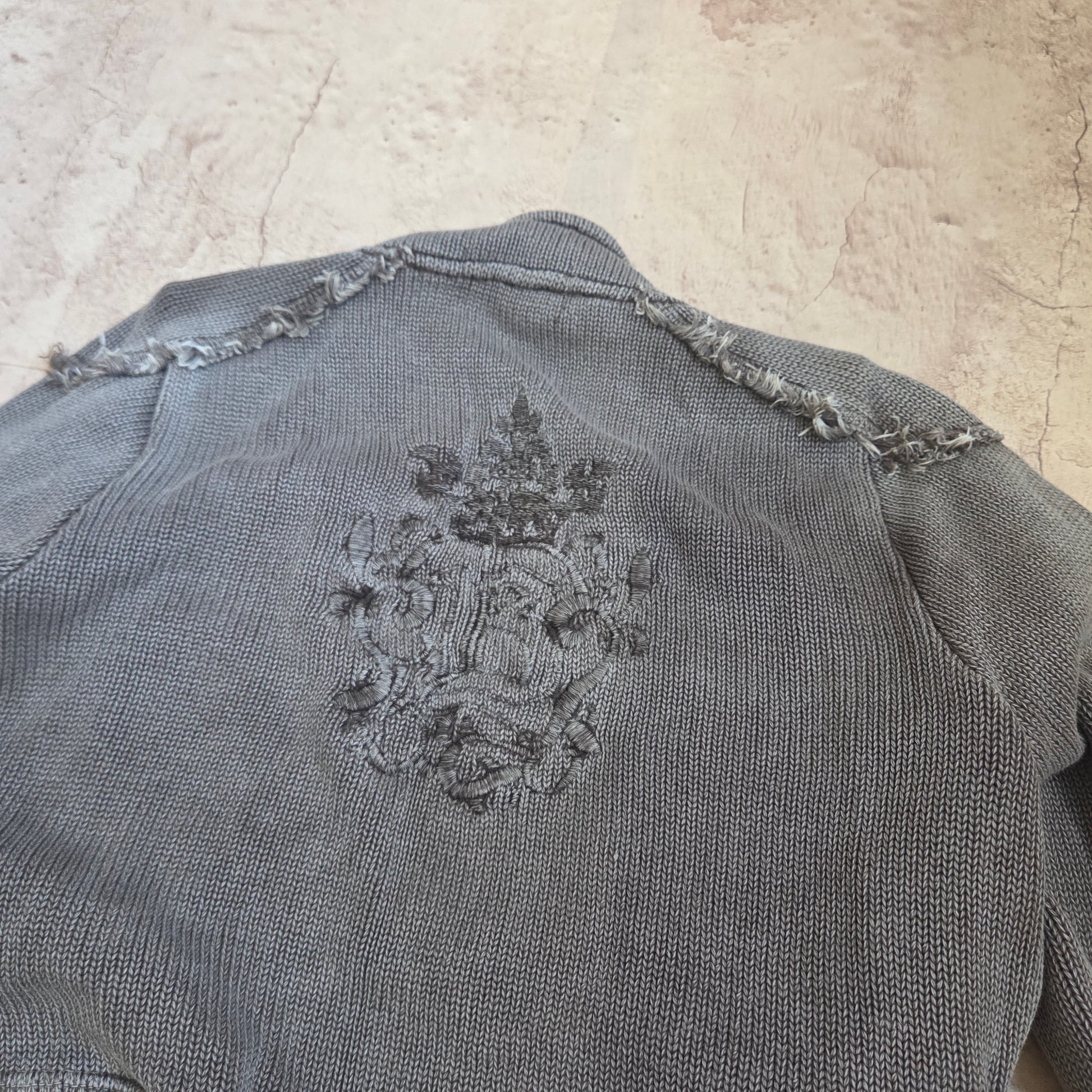 Vintage Washed Asymmetrical Zip Up Cotton Jacket. Brown/grey. Back graphic